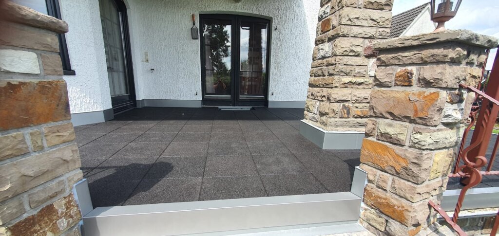 Wir nutzen unsere selbst entwickelte und patentierte Technologie: alle terralastic-Bodenbeläge werden schwimmend auf der ebenen Abdichtung verbaut. Die Trägerplatte ist ganzflächig wasserdurchlässig und verfügt an der Unterseite über eine eingepresste Drainage. Das ❯ terralastic-System garantiert eine technisch unangreifbare und optisch hochwertige Fläche.